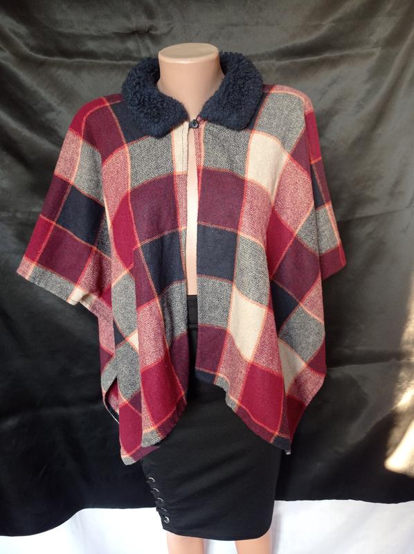 пончо теплое, есть отверстия для рук, одна пуговица. по бирке размен 10-13 лет, но само пончо намного больше. состояние отличное.