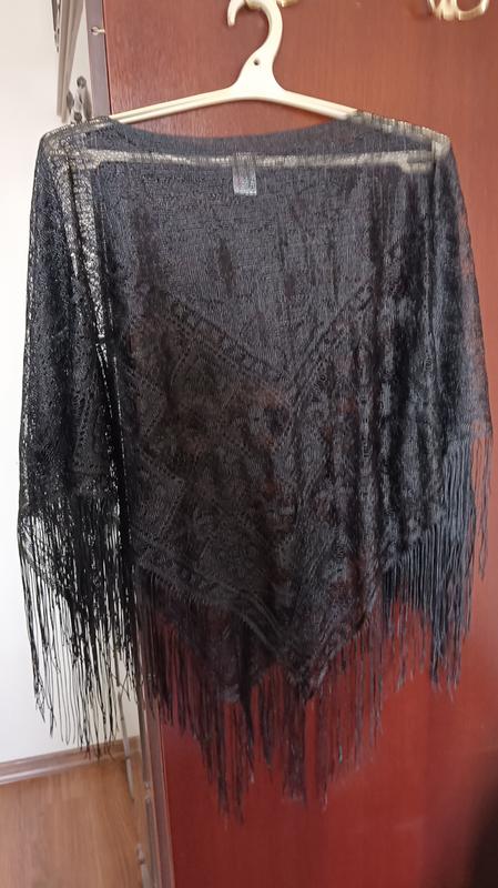 Пончо ажурное черного цвета, 100% полиэстер, новое. Максимальная длина 80 см.