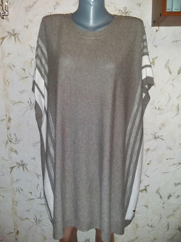 Размер М, но будет на много больше, смотрите замеры. Ткань трикотаж, тонкая, хорошо тянется. Состав ткани на последнем фото. Состояние: очень хорошее, без дефектов. Цвет между бежевым и серым. длина от верхней точки плеча до низа 84. длина рукава от горловины 33. полуобхват выреза для руки: 25 тянется до 30. полуобхват груди: 81. полу охват талии: 82. полуобхват бедер: 87.