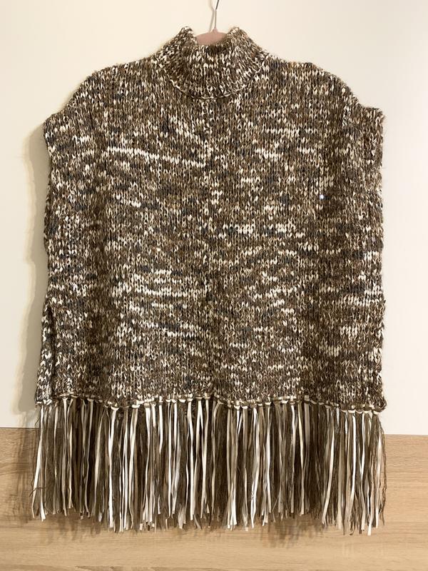 Размер: S. Также подойдет для размеров M, L, oversize. Состояние: новый. Выполнено из разнообразной пряжи. Разрезы по бокам. Цветовая гамма «Пустеля». 100% оригинал, Италия.
