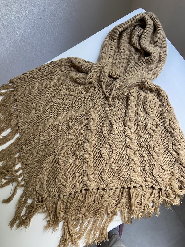 Очень классное вязаное пончо с кисточками и капюшоном. Стан - идеальный