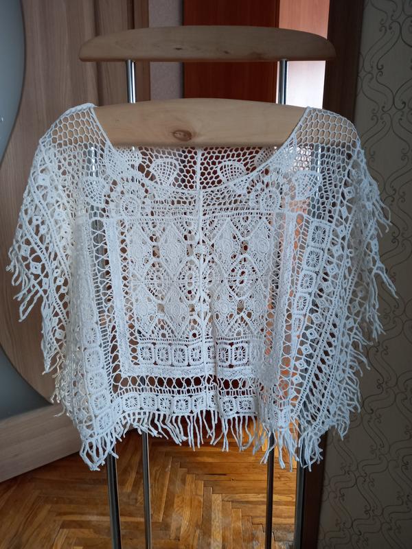 Накидочка ажурна з котонової нитки. Буде доречна на пляж. Або на сукню з відкритими плечами. Ширина 60, довжина 43
