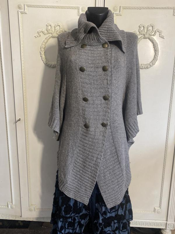 Цвет серый. Состав: шерсть/нейлон(80/20). Размер по набору-S. Потерпенная одна пуговица.