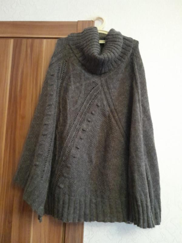 Пончо коричнево сірого кольору в ідеальному стані, без слідів носки. Дуже мягеньке, мохерове і тепле. Має шикарний вигляд. В'язка дуже красива. На розмір 46-48. довжина 72 см. Прошу зауважити. Повернення немає. Працюю тільки з оплатою Продавцю на карту. Відправлю Укрпошта Нова пошта.