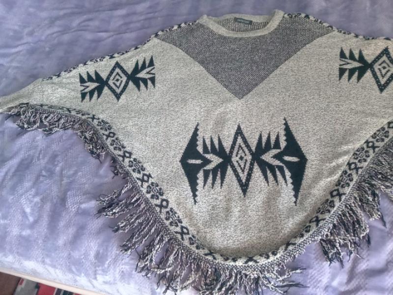 шикарное пончо. есть манжет.трикотажная вязка.длина 85см, длина рукава от воротничка 70см,