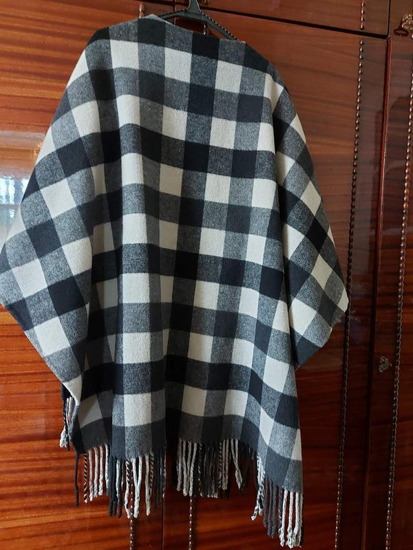 Очень теплое пончо из пальтовой ткани.Тканка мягкая и приятная на ощупь Длина до колен
