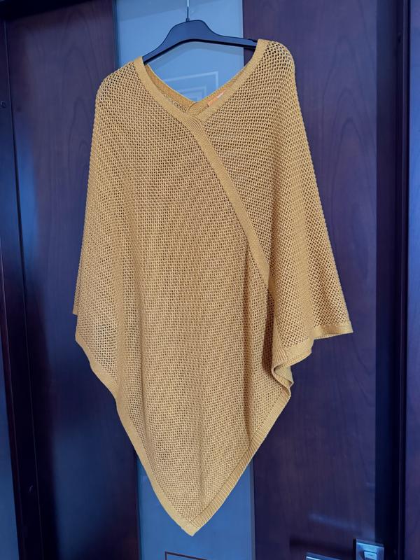 Дуже гарне пончо відомого бренду, гарний осінній колір, справжній на останніх фото. Бірка з розміром та складом зрізана. По відчуттю, там, є бавовна та вовна. Стан ідеальний. Довжина по коротшому краю- 80 см. Довжина по найдовшому краю - 92 см. Ширина - 91 см.