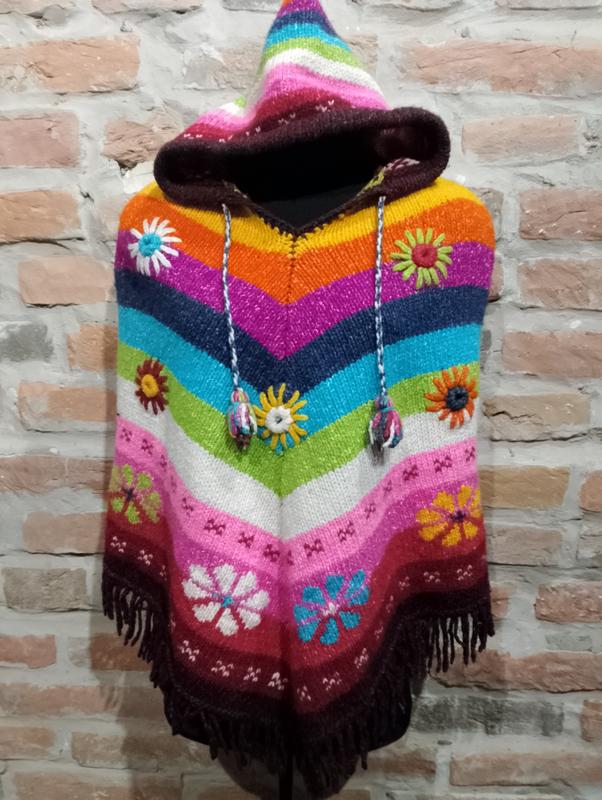 спровождает праздник😍 пончо Перу. войлочная,грубая вязка. абсолютно яркие радужные цвета. вышитые цветочки. крутое,теплое, яркое. состояние супер.
