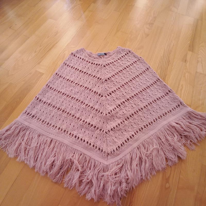 пончо красивой вязки, приятного разового цвета в идеальном состоянии длина в самом длинном месте – 58 сзади, 51 спереди ширина- 50 в плечах