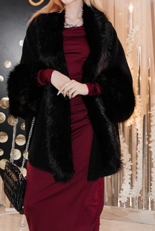 Роскошное пончо-пальто с мехом. Черного цвета, новое.Италия размер подойдет дорогой