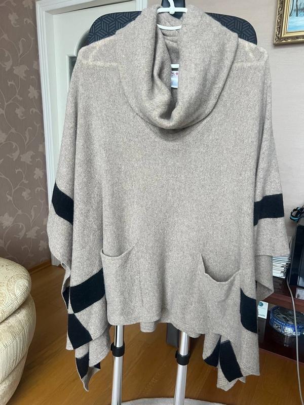 Пончо жіноче AL BO під горло, обʼємний комір, вовна, оверсайз Довжина по спині 70 см