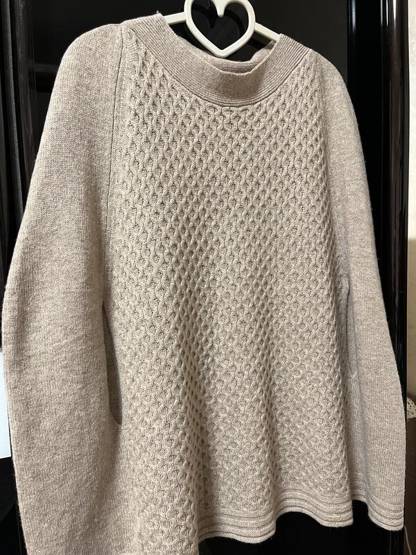 Тепле вʼязане пончо , кейп. По боках прорізі для рук. Розмір вказаний L. Довжина 70см, по низу пів обхват 85см. Стан ідеальний( новий)