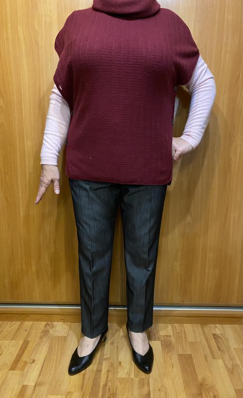жіночий пончо-жилет від відомого британського бренду Barbour (модель Kilda Knit). Barbour славиться своєю довговічністю та класичним «заміським» стилем, який ніколи не виходить із моди. Згідно з етикеткою, це преміальна суміш матеріалів: • 40% Вовна (Wool) та 10% Кашемір (Cashmere): забезпечують чудове тепло та м'якість. • 30% Віскоза (Viscose) та 20% Поліамід (Polyamide): додають тканині шовковистості, допомагають тримати форму та підвищують зносостійкість. • Колір: Глибокий винний або бордовий (часто називають "Burgundy" або "Bordeaux"). • Фасон: Це вільний крій типу пончо або накидки з високим коміром («гольф»), який м'яко драпірується. • Елементи: З боків розташовані декоративні ґудзики з гравіюванням логотипу Barbour. Вони дозволяють регулювати те, як річ сидить на фігурі. • Текстура: Основна частина має рельєфну вертикальну в’язку, що візуально витягує силует. • Брендування: Окрім внутрішньої бірки "Winter Tartan", на спині або знизу є невелика металева пластина з написом Barbour — це фірмовий знак автентичності бренду. Розмір вказано 12, на який буде сидіть оверсайз, я приміряю на розмір 18(44)165 см , мені зручно, але сидить по фігурі. Полотно тоненьке, я приміряю як другий шар на теплий светр. Рекомендую безпечну оплату. Заміри: НОГрудей 58 см Довжина по спинці 67 см Плече спущене 25 см Комір в розгорнутому вигляді: Висота 30 см Ширина по краю 37 см
