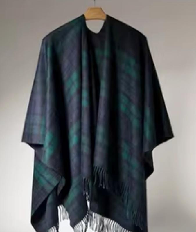 Пончо синее, шаль, ширина полосы 67, длина по спине 83, длина всей полочки со спины низа 145, от шеи на переднюю планку длина 80.