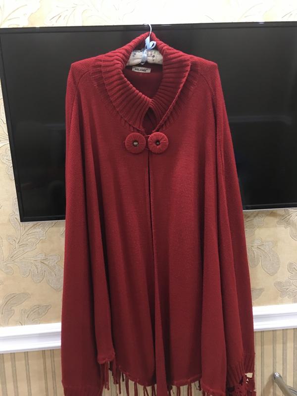 Трикотажное, необычного фасона пончо, с оригинальным рукавом, низ с бахромой, универсального размера от 50-70., имеются незначительные катышки