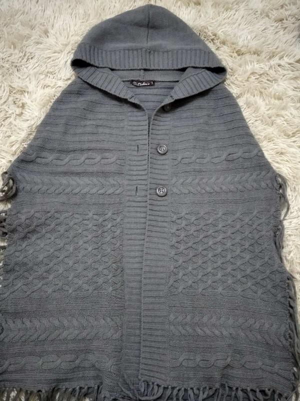 Пончо в идеальном состоянии, тёплое--в составе 50% шерсти. С капюшоном, без дефектов и катышек.