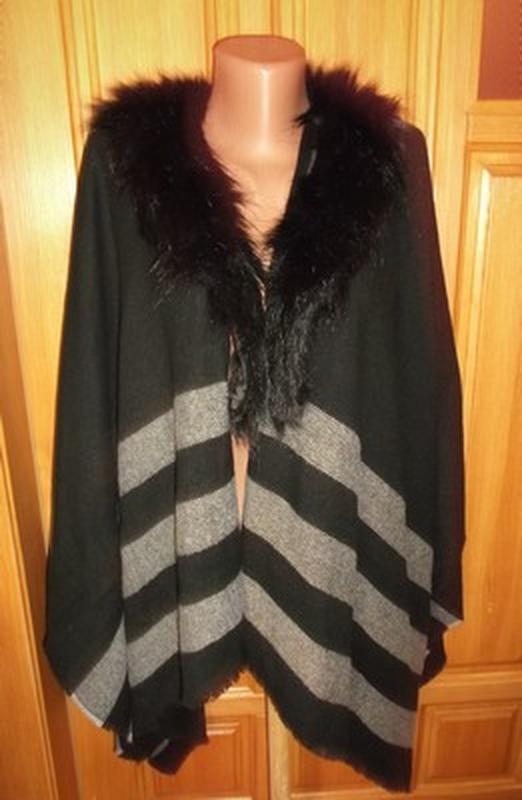 Распродажа верхней одежды. Приятного просмотра. Пончо длина 67, от горловины по линии руки 64. Воротник шалька искусственный мех. Большой выбор качественной одежды, по цене распродаж..