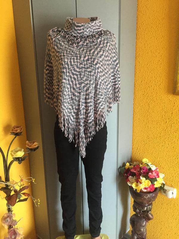 Легке в'язане пончо, ніжно рожева з сірим. Довжина довгої сторони 70 см , з бахромою 78 см; короткої сторони 46 см, з бахромою 54 див. Дивіться також інші мої оголошення , багато хороших фірмових речей і взуття, адекватні ціни , підписуйтесь, щоб першими дізнаватися про оновлення