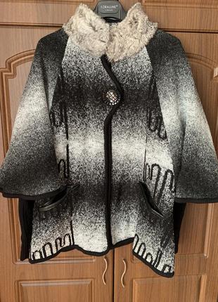 Новая кофточка (летучая мышь) отлично подойдёт для прохладной/холодной погоды. Декорирована брошью-пуговицей. Застегивается на молнию и кнопку. Состав: мохер 50%, шерсть 30% Рукав реглан Длина 67 см ОТ 60 см Низ 70 см ОГ приблизительно 70 см, т.к. померять сложно из-за фасона. Подойдёт на размеры 52-54