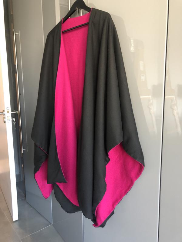 Шерстяное, двухстороннее пончо, шесть плотная, высшего качества, в идеальном состоянии, цвет немного засвечивает, на самом деле он более глубже и благороднее чем на фото, жаль но телефон не передал. Подойдёт на любой размер, ткани очень много, очень крутая вещь!!!!