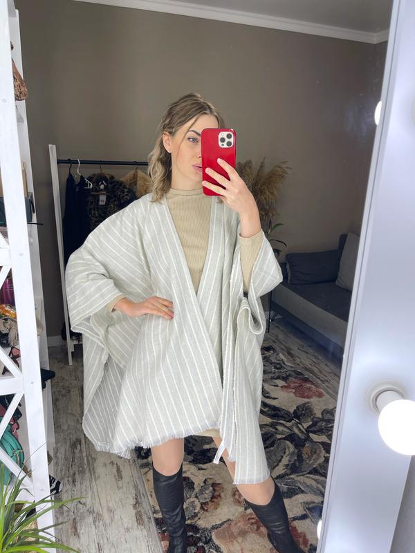 Пончо от H&M в составе которого 20% шерсти и 80% акрил. Размер one size ( универсальный). Состояние идеальное!!!( новая вещь), не носилась.