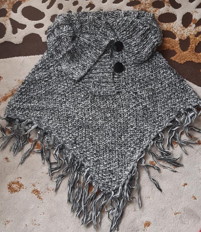 Фірмова, стильно і дуже тепла накидка пончо. Стан як нова.Довжина без ворота і френзлів 69, ширина 86.