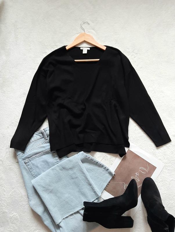Базовий светер чорного кольору з v-образним вирізом , бренду h&m .Розмір вказано Xs (крій оверсайз)підійде на S.