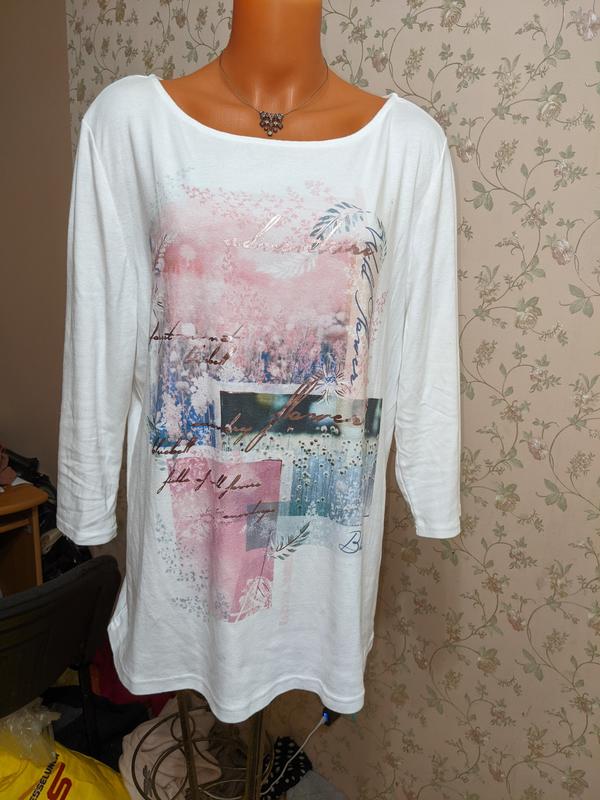 красивая кофточка из коттона,стильный рисунок.От подмышки до подмышки 59-61см, длина 66см, длина рукава с плечом 50см