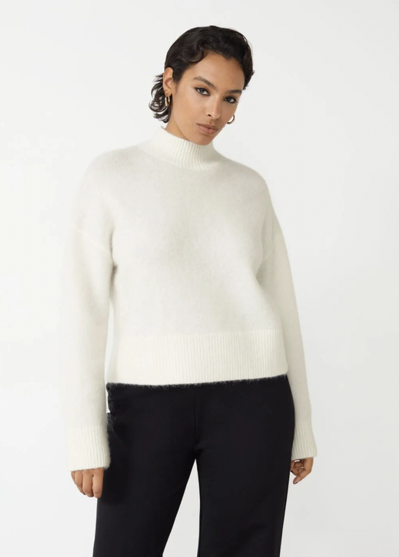Жіночий пуловер В офіційному магазині коштує 89 євро в 5 кольорах Тканина: 39% вовна, 30% мохер, 29% поліестер, 2% спандекс. XS: ширина плечей 52, обхват грудей 98, довжина рукава 50, довжина одягу 49; S: ширина плечей 54, бюст 104, довжина рукава 51, довжина одягу 50; М: ширина плечей 55, обхват грудей 110, довжина рукава 52, довжина одягу 51; L: ширина плечей 56, бюст 114, довжина рукава 53, довжина одягу 52; XL: ширина плечей 57, обхват грудей 118, довжина рукава 54, довжина одягу 53