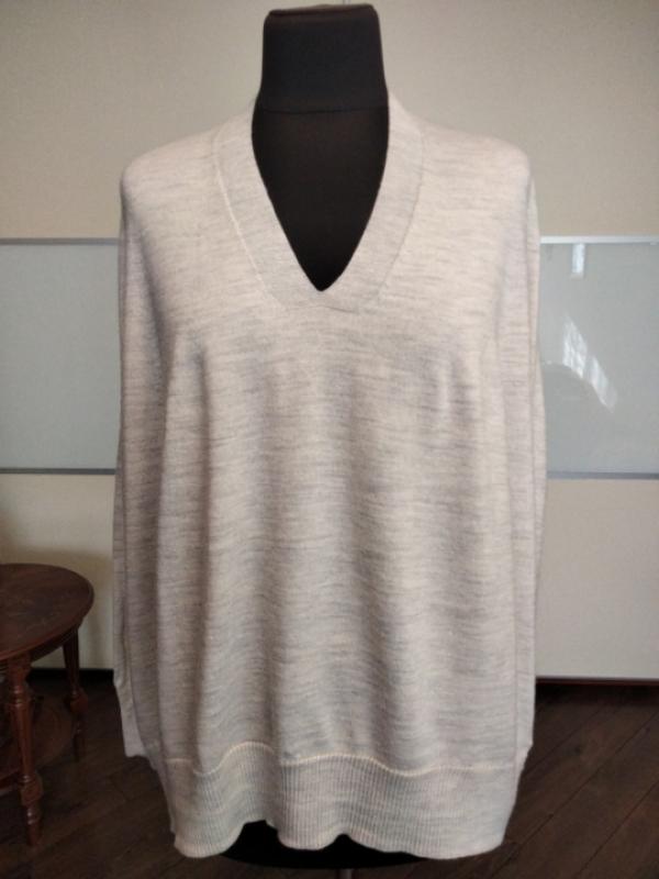Пуловер свитер оверсайз из 100% шерсти, размер М. Длина перед 69 см, зад 75 см, пог 75 см, рукав реглан 78 см.