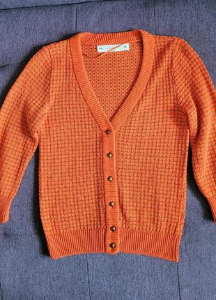 🧡Кофточка на пуговицах,рукав 3/4 🧡Красивая вязка, оранжевый цвет 🧡Плечи 36 см;ПОГ 44 см;рукав 46 см 🧡Длина изделия по спинке 53 см