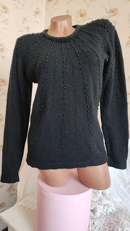 Шикарный пуловер черного цвета, украшенный черным биссером. Теплый, мягкий, приятный к телу. Отличного качества - в составе 60% шерсть ягненка, 20% ангора и 20% нейлон. В плечах 38 см. Состояние идеальное.