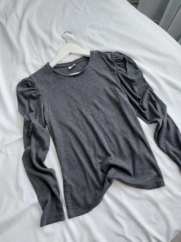 Тоненькая кофточка в рубчик, темно-серого цвета. Стан идеален, без дефектов. Размер L-XL. Длина 60 см. Плечи 41 см. Рукав от плеча 64 см. Оп/г 48 см. Ткань хорошо тянется.