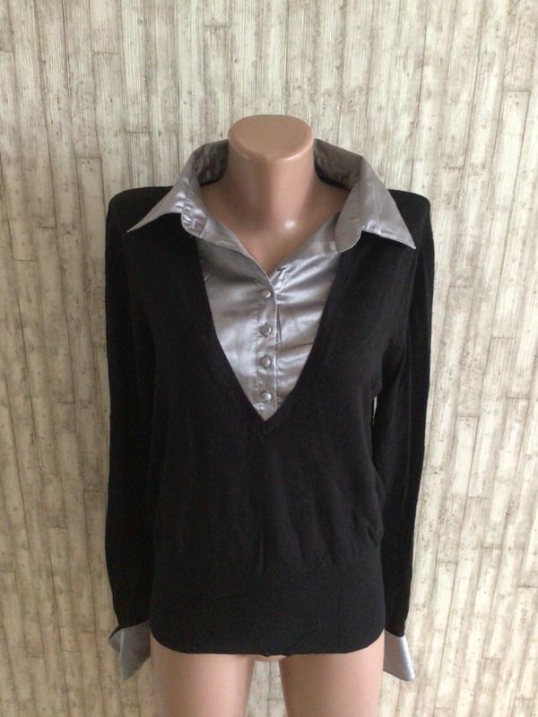 Ошатний офісний пуловер з рубашкою. Довжина 58, пог 52, рукав 65, плечі 42. Манжет 7 см Без катишів і нюансів.