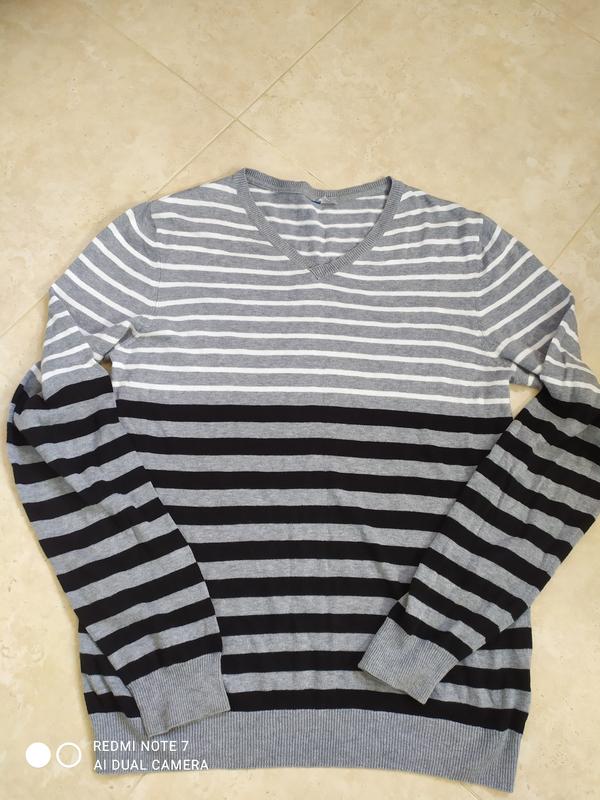 в ідеальному стані. базовий пуловер, підійде і на чоловіка і на жінку. приємний трикотаж - бавовна. довжина 72 довжина рукава від горловини 85 по плечах 47, плече 13 ширина під рукавами 56 ширина внизу 47-66( резинка тягнеться).