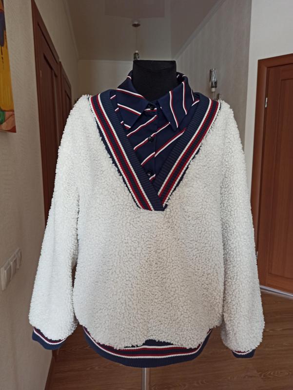 стильный теплый пуловер женский, вшитая имитация рубашки,размер М,L, дополнительные фото и замеры по запросу