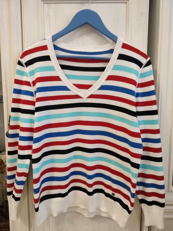 Пуловер из хлопка, März, в полоску, цвета синий, темно-синий, голубой, красный, белый, унисекс, 76 ориентироваться по замерам, все бирки срезаны: длина изделия 61 см, ПОГ 52 ПОТ 46, плечи 45, длина рукавов 60. Состояние очень хорошее.