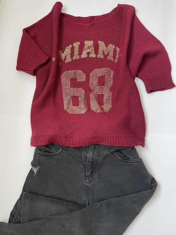 пуловер oversize з принтом та рукавом 3/4 прмємний до тіла довжина 55 см рукав 35см ширина по груді 57