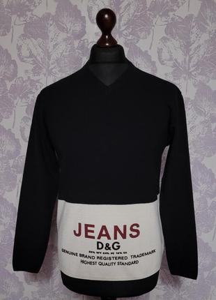 Полувер итальянского премиум бренда Dolce & Gabbana , линия Jeans, не глубокий V-образный воротник,цвет: сочетание чёрного и белого, состав:50% мериносовая шерсть,34% акрил,16% эластичные волокна, производство Италия, замеры (п/объем 51, плечи 44, длина рукава по внешнему шву 56, по внутреннему 45, длина изделия 61). Состояние нового.