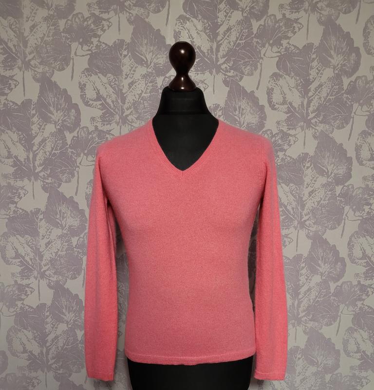 Кашемировый полувер английского бренда John Lewis, цвет розовый, размер 14(M), состав -100% кашемир, производство Китай, замеры (п/объем 48, плечи 38, длина рукава по внешнему шву 61, по внутреннему 47, длина изделия 59).