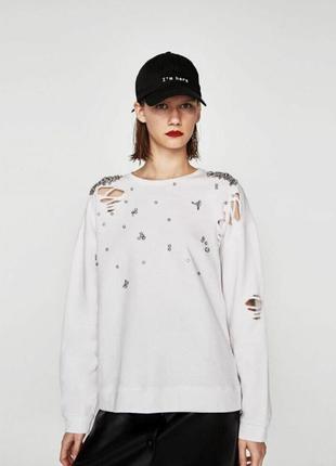 Оригинальная кофта от Zara. Длина -66 Плечо-19 Груди-60 Отсутствие одного камушка( последнее фото)