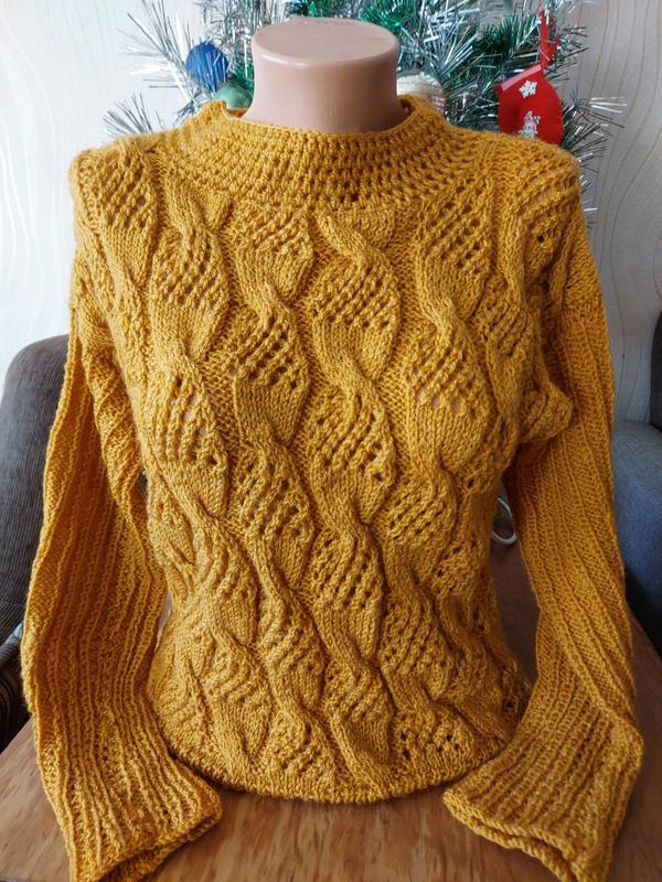 Стильный женский джемпер с оригинальным узором. Ручная вязка
