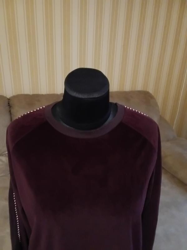 Очень классный свитшот с двух тканей: велюр + трикотаж обычный.Приемный на ощупь.