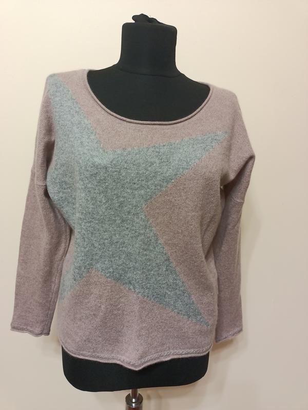 пкловер из кашемира, присборенного розового с серым цветом.мягкий и приятный на ощупь.