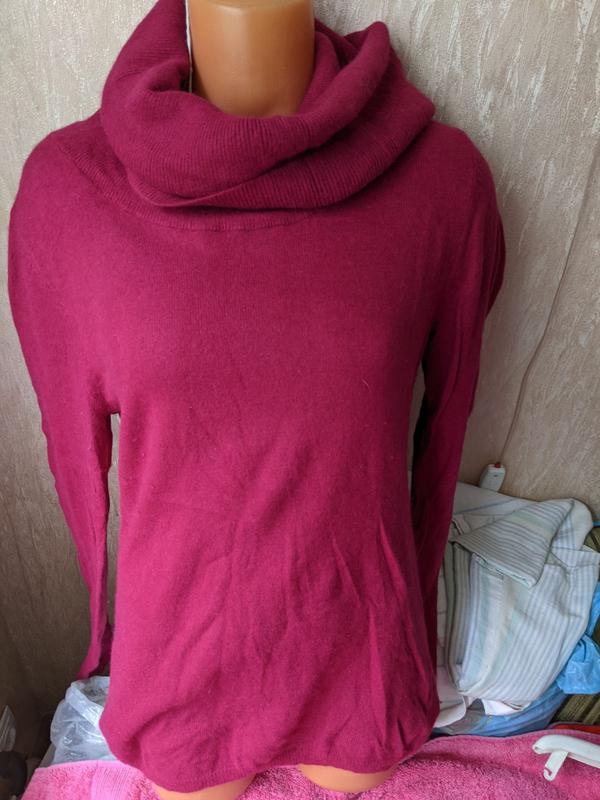 дуже гарний вишневий колір,м,якенька ,пухнаста ,не груба ,ну дуже шикарна кофта тепленька і не товста .