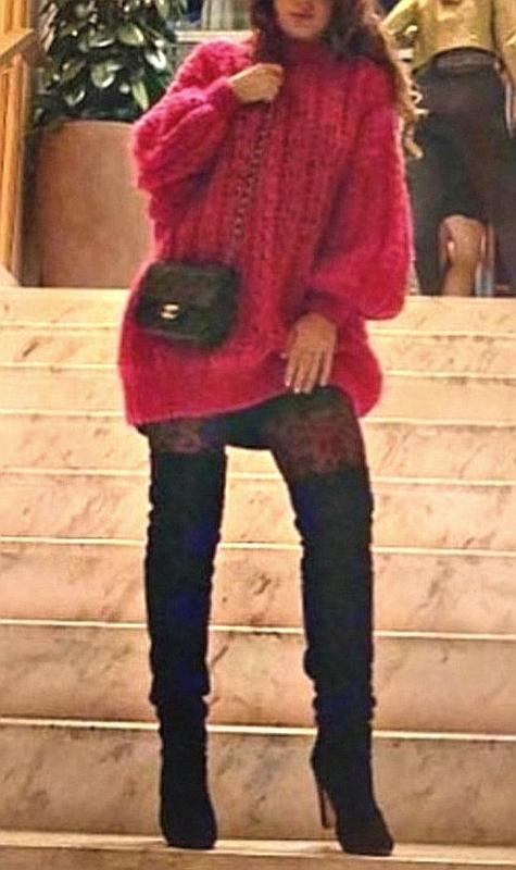 Удлинённый объёмный пуловер, платье, цвет фукции. Длина 76 см, ПОГ 60 см, длина рукава от горловины 74 см