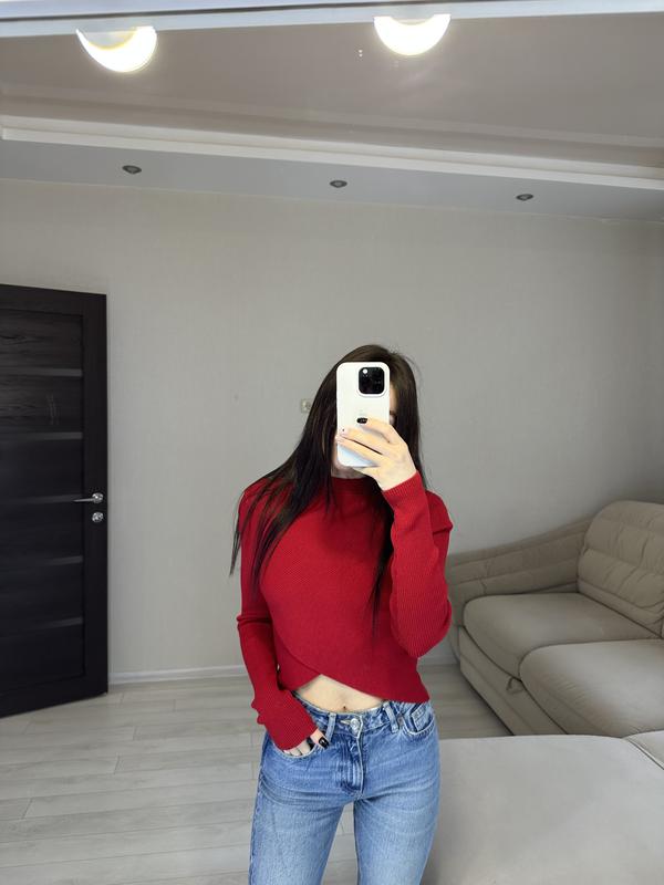 Красный пуловер в рубчик