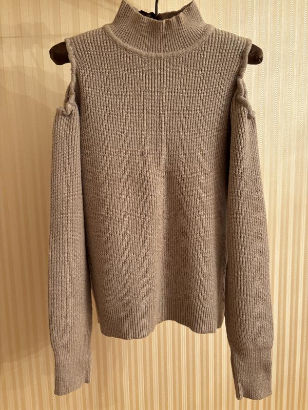 Пуловер. Бренд:Vila. Размер:М. Цвет: капучино. Открытое плечо. Без нюансов. Б/у. Состав: 30% хлопок. 28% акрил. 25%полиэстер. 8%полиамид.3% эластан.