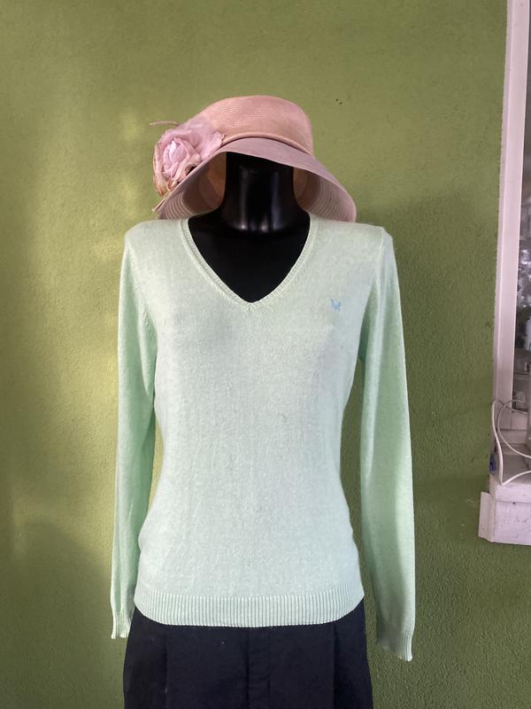 Чудовий пуловер ніжно-салатового кольору від CREW. Склад:котон/кашемір(85/15). Розмір по бірці-14. Заміри:-60 см, ПОГ-48см, ПОБ-46 см, рукав-64 см