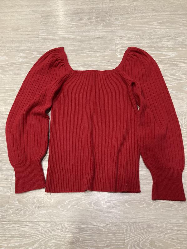 Стильный трендовый свитер в рубчик с объемными рукавами и квадратным вырезом ,мягкий и приятный к телу
